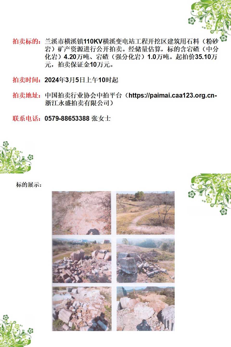蘭溪市橫溪鎮(zhèn)110KV橫溪變電站工程開挖區(qū)建筑用石料(粉砂巖)礦產(chǎn)資源