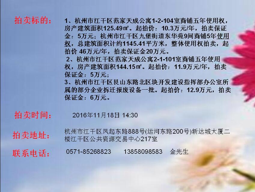 范家天成公寓商鋪使用權(quán)轉(zhuǎn)讓、報(bào)廢設(shè)備拍賣