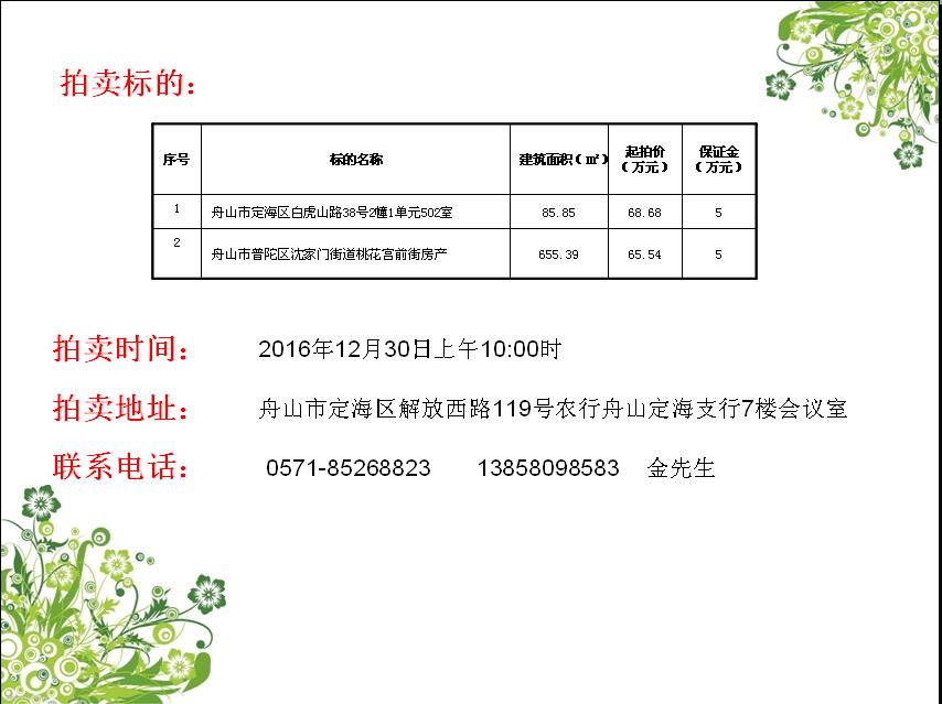 農行舟山分行閑置房產拍賣