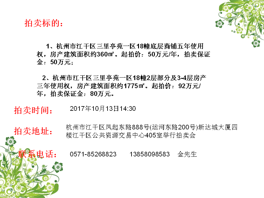 江干區(qū)三里亭苑一區(qū)18幢部分房產(chǎn)使用權(quán)轉(zhuǎn)讓拍賣