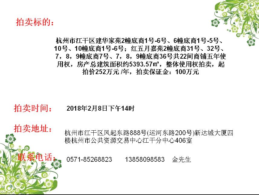 建華家苑、紅五月嘉苑共22間商鋪五年使用權(quán)拍賣(mài)