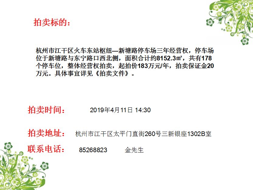 杭州市江干區(qū)火車東站樞紐—新塘路停車場三年經營權