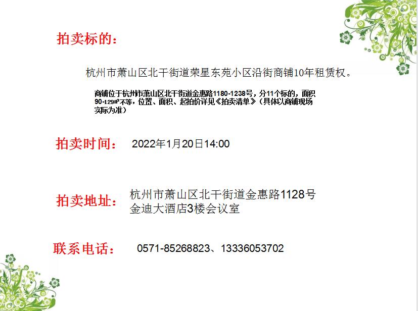 杭州市蕭山區(qū)北干街道榮星東苑小區(qū)沿街商鋪10年租賃權(quán)