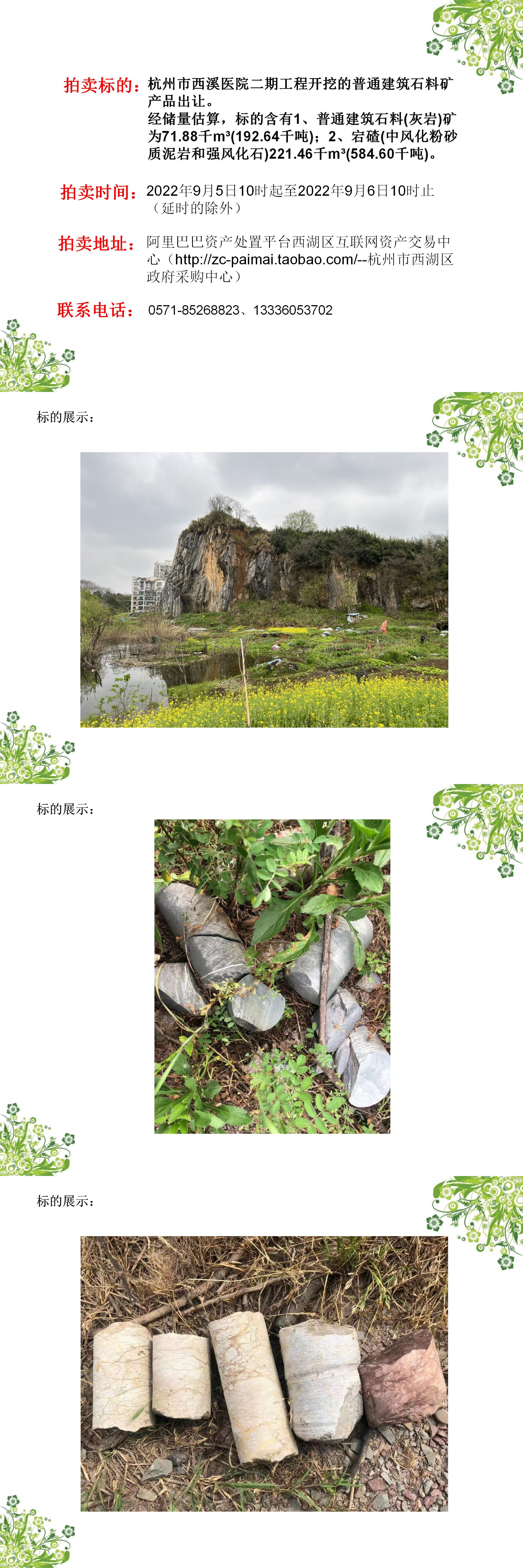 杭州市西溪醫(yī)院二期工程開挖的普通建筑石料礦產(chǎn)品出讓