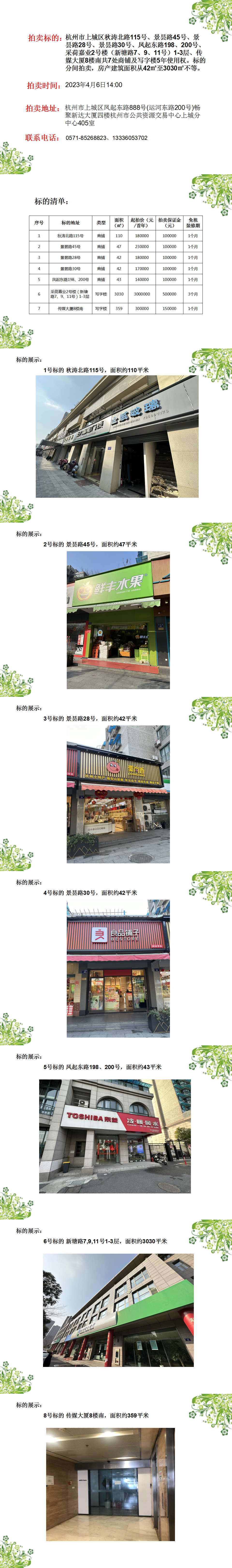 杭州市上城區(qū)秋濤北路115號(hào)等共7處商鋪 及寫字樓5年使用權(quán)