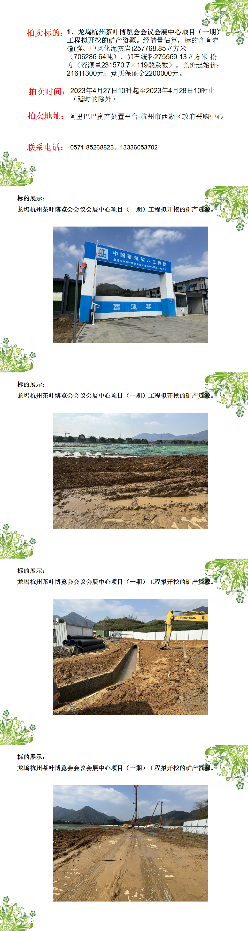 龍塢杭州茶葉博覽會會議會展中心項目(一期)工程擬開挖的礦產(chǎn)資