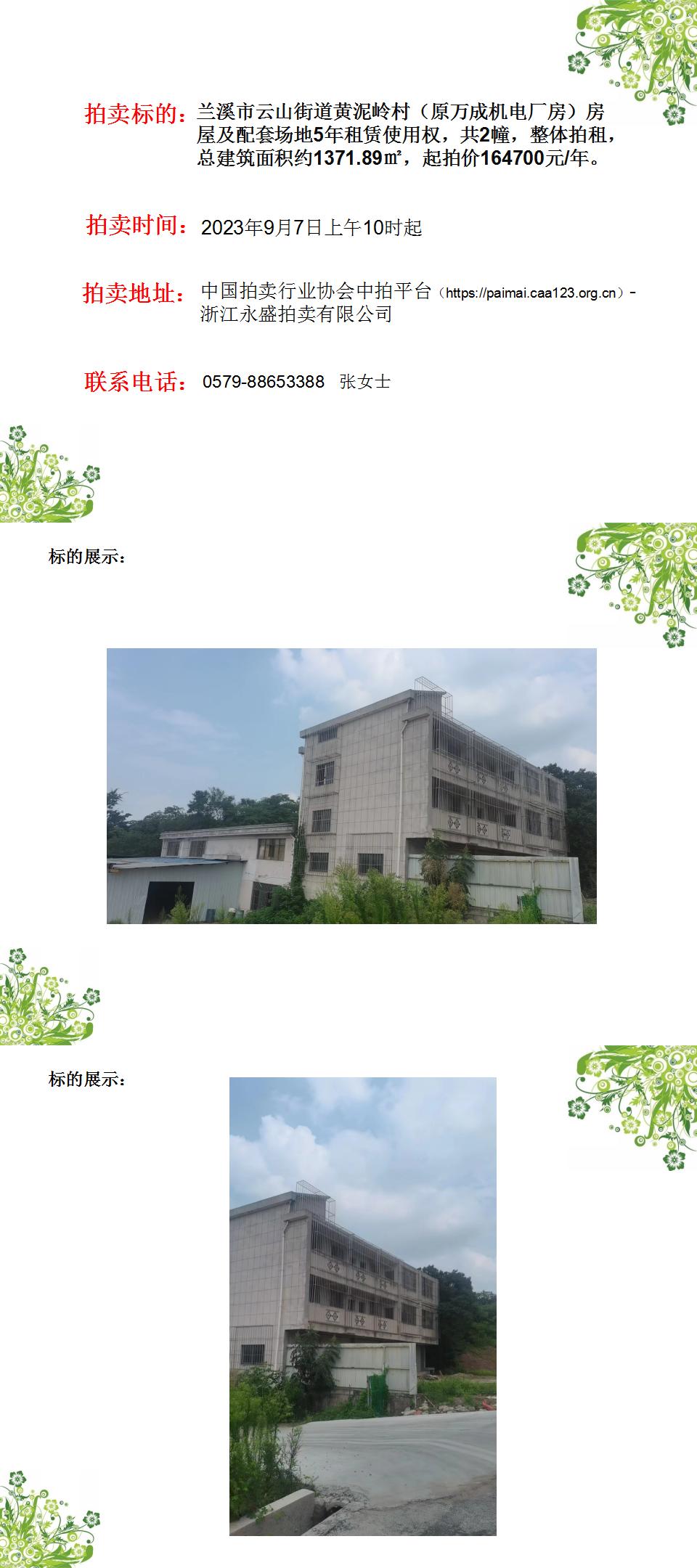 溪市云山街道黃泥嶺村(原萬成機(jī)電廠房)房屋租賃使用權(quán)
