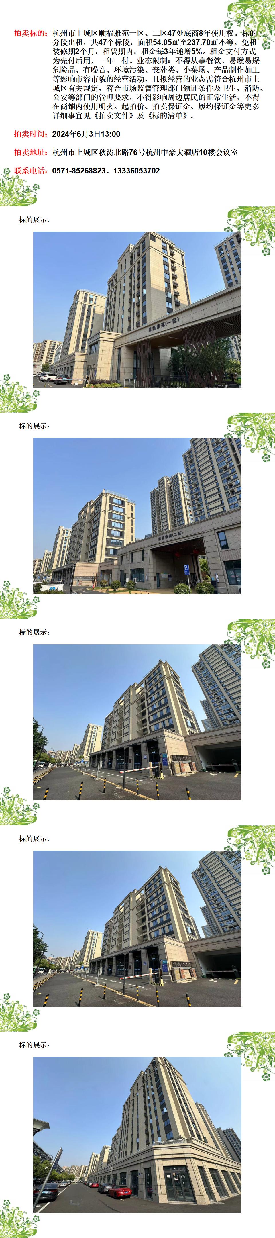 杭州市上城區(qū)順福雅苑一區(qū)、二區(qū)47處底商8年使用權(quán)