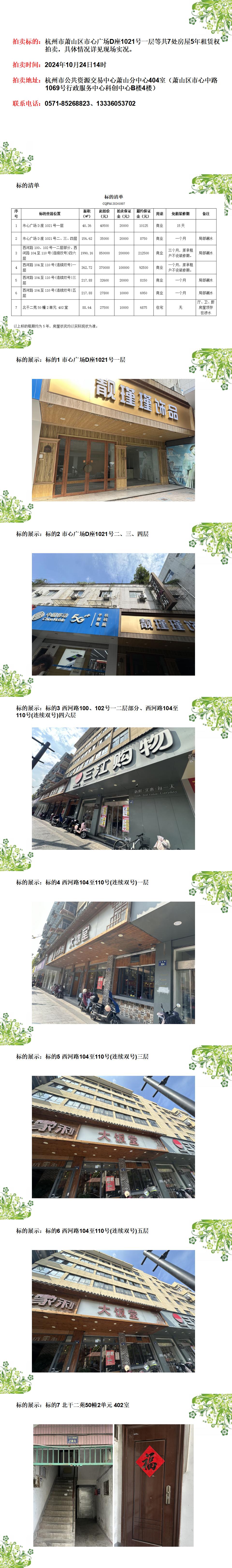 杭州市蕭山區(qū)市心廣場(chǎng)D座1021號(hào)一層等共7處房屋5年租賃權(quán)